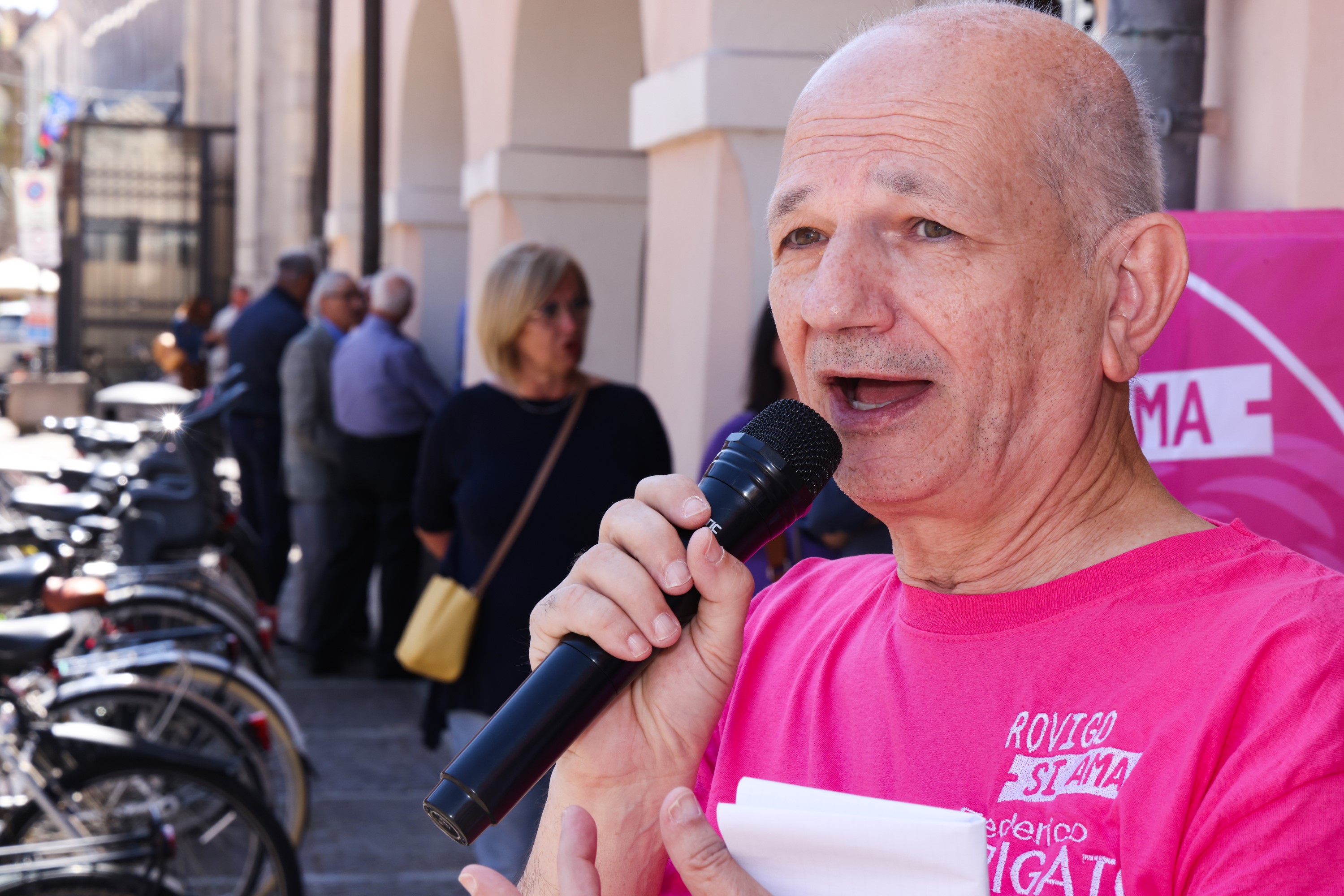 l gazebo in piazza San Benedetto, poi la camminata alla quale hanno preso parte anche i candidati consiglieri e il candidato sindaco Federico Frigato della lista Rovigo Si Ama, con maglietta “d’ordina...